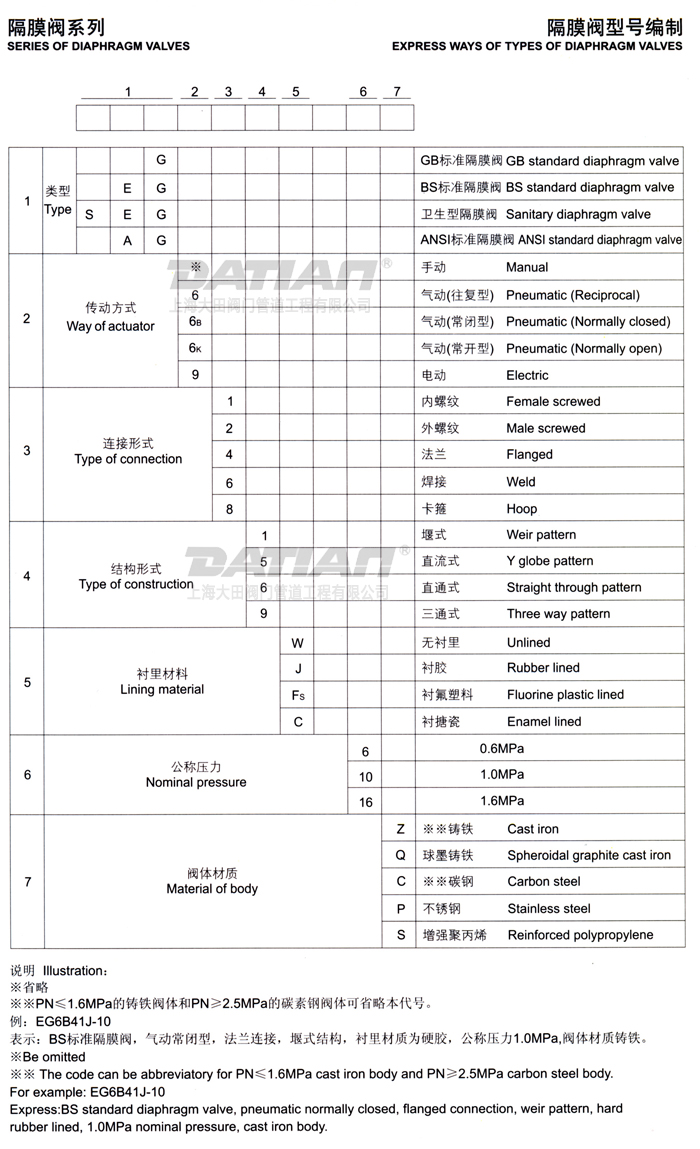 | 3 | 閥門類別 | G-隔膜閥 | |||||
